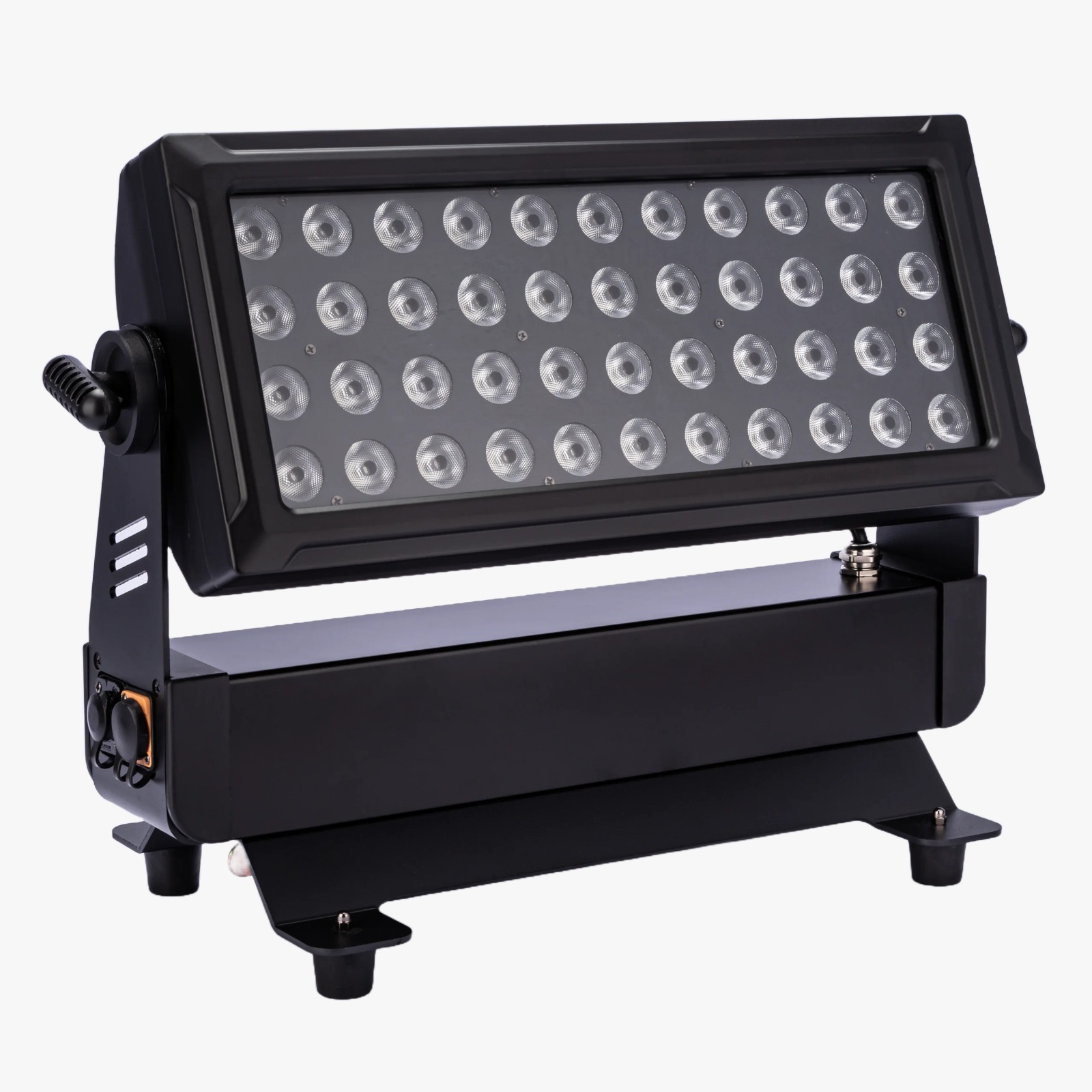 O Refletor P5 44x10W RGBW IP65 ST-44FST é um equipamento de iluminação profissional para uso externo, desenvolvido para projetos que exigem alta potência luminosa, resistência climática e controle preciso de cores. Equipado com 44 LEDs Quadri 4 em 1, entrega excelente uniformidade de iluminação, com mistura eficiente de cores RGBW.